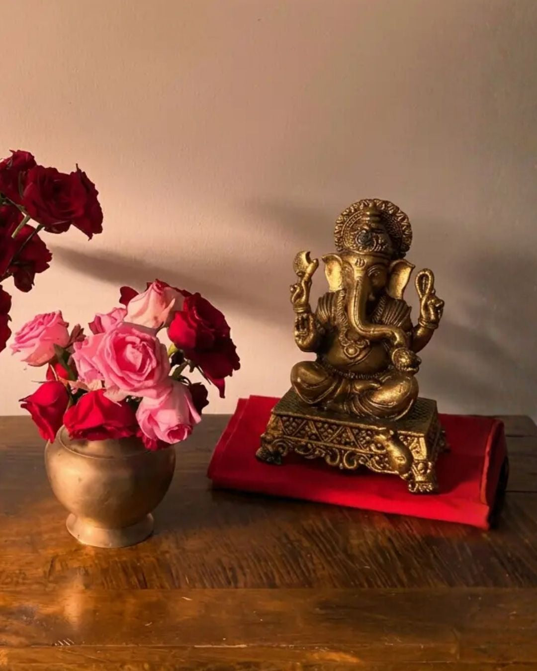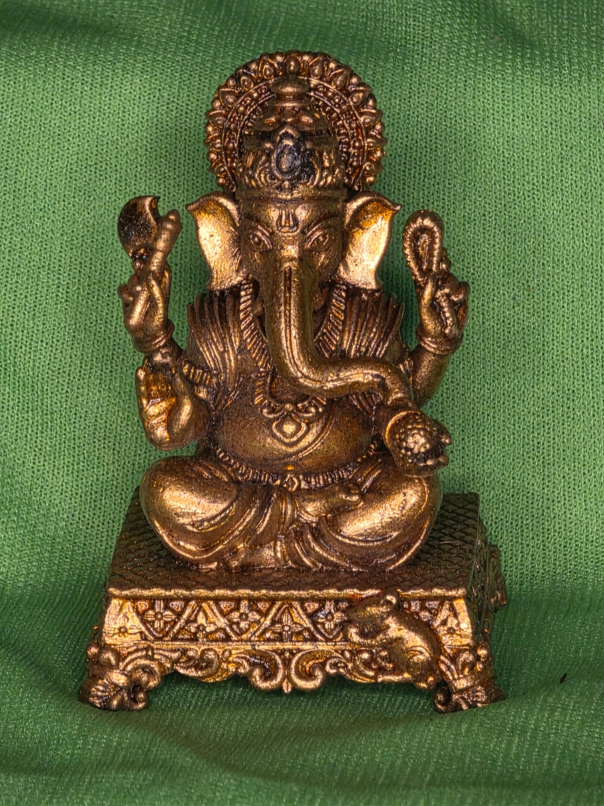 Sitting brass Ganesh ji on Simhasan