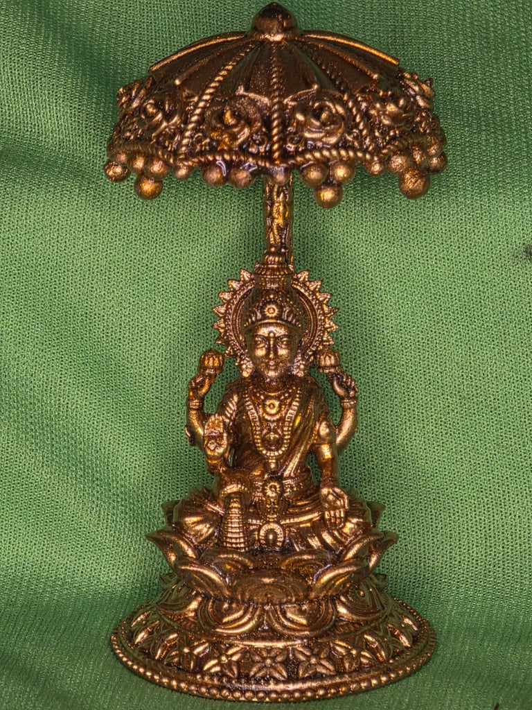 Sri Maha lakshmi devi in lotus with umbrella in brass antique finish