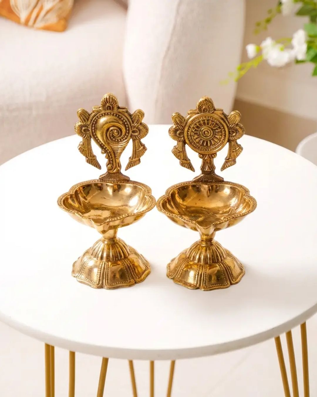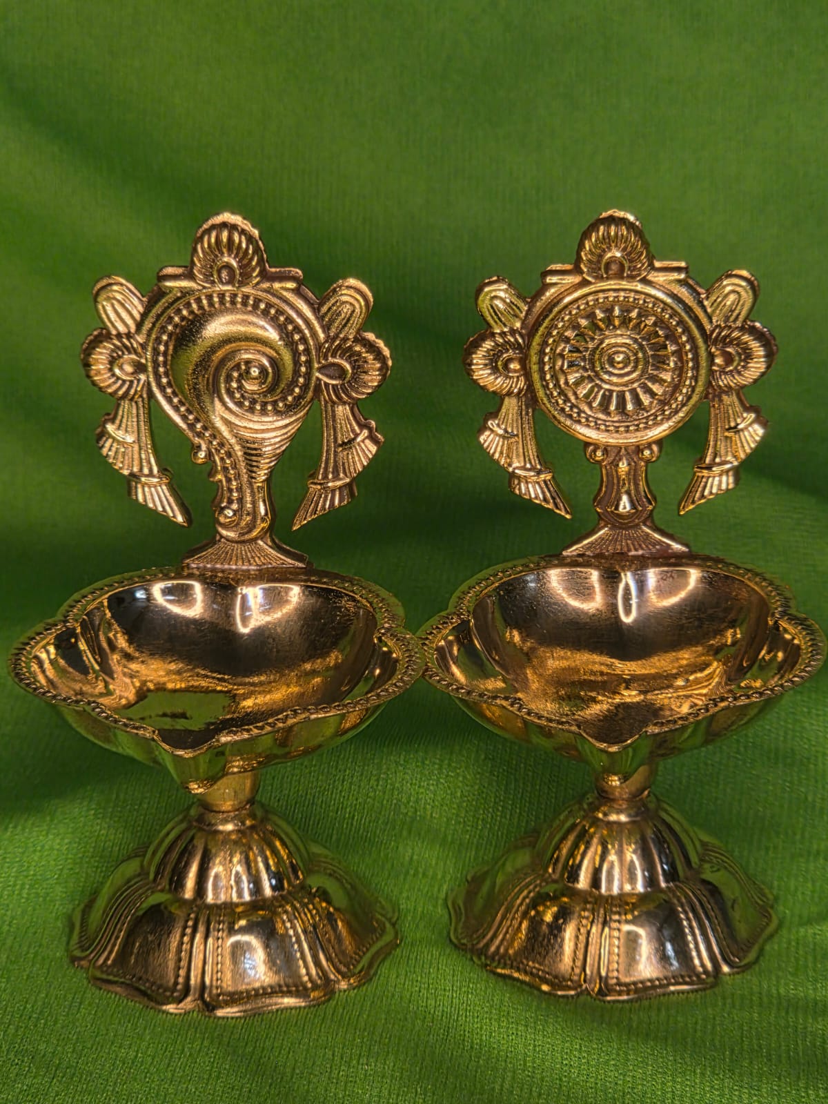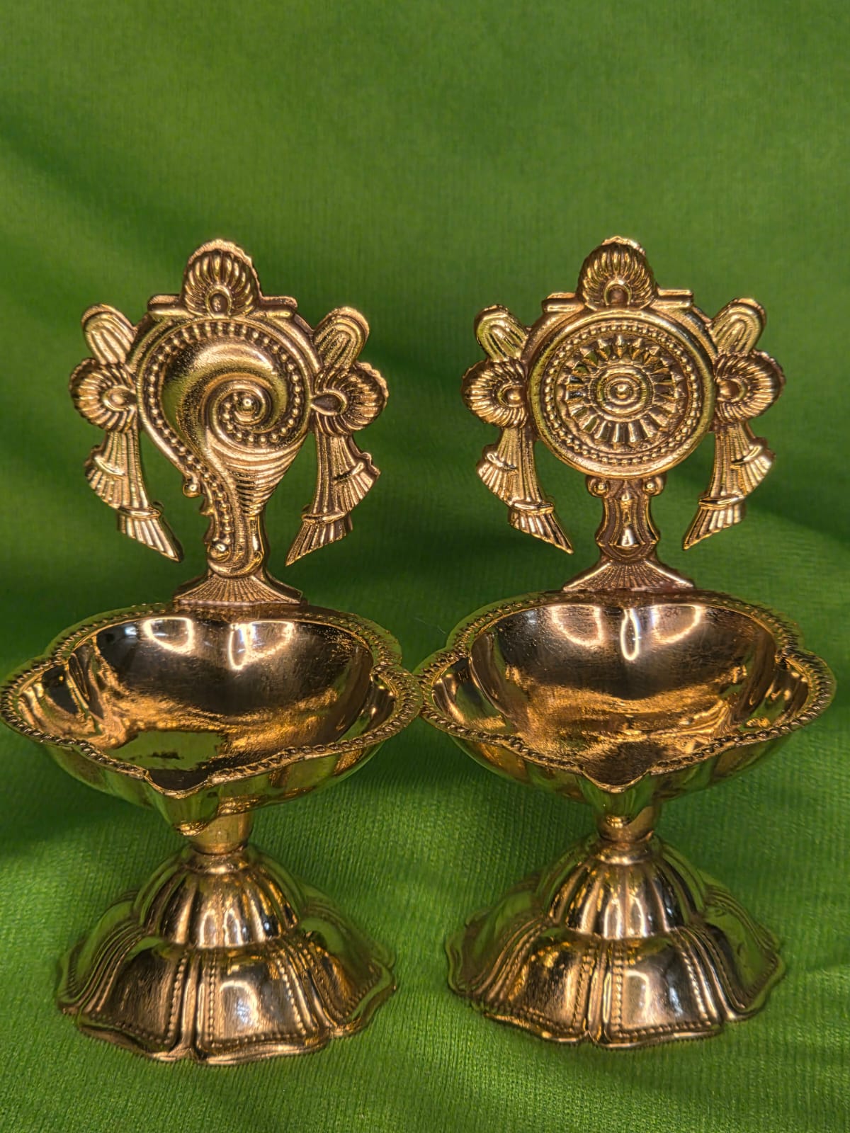 Beautiful and auspicious pair of shaku chakra diyas