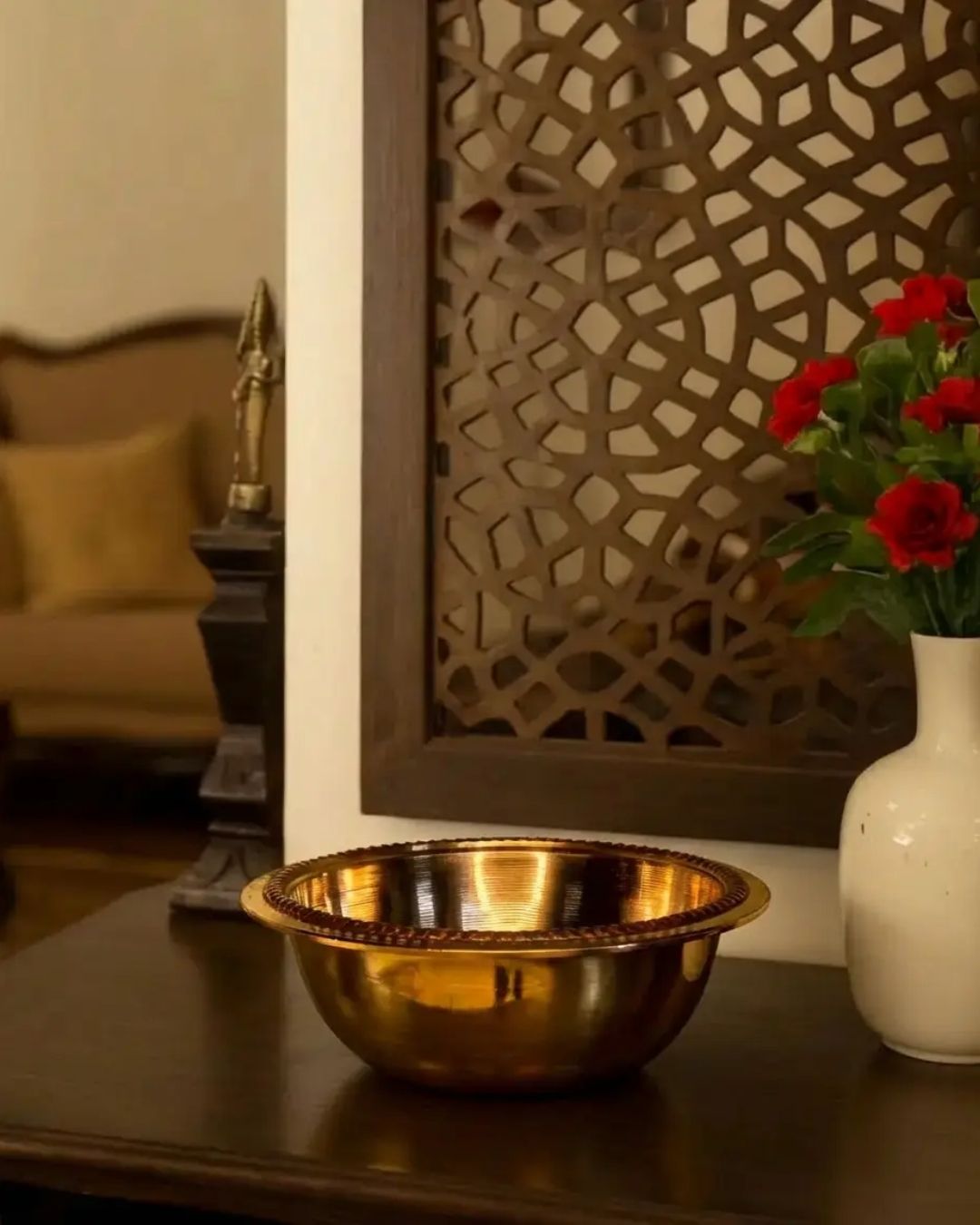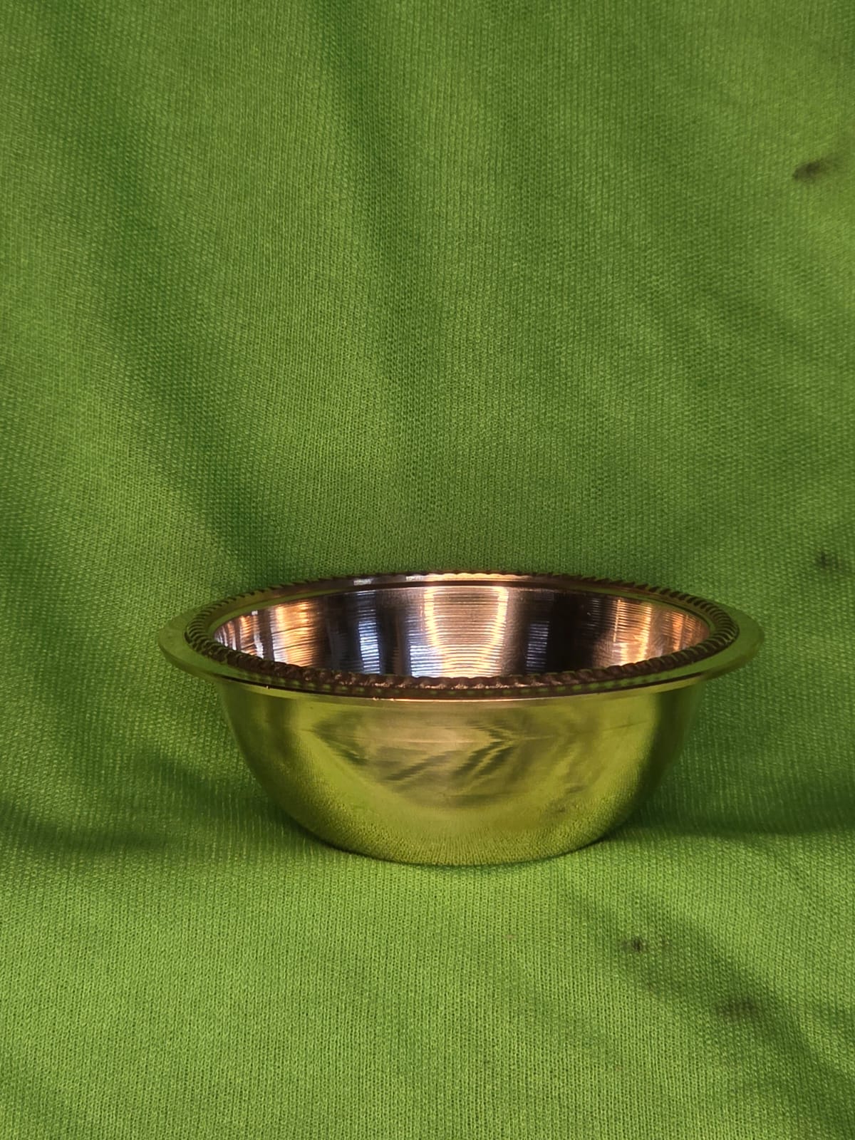 Crafted from solid brass, this small heavy bowl delivers substantial weight and durability for everyday use or display. The dense construction ensures stability while its compact size makes it versatile for serving, storage, or decorative purposes. The warm, lustrous finish of brass develops a distinguished patina over time, adding character and depth. Ideal for those who appreciate quality metalwork and timeless design.